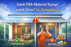 Memilih kanopi untuk teras rumah terlihat seperti hal sederhana. Namun, kenyataannya tidak sedikit orang yang mengalami masalah karena salah memilih material. Itulah mengapa penting memahami Salah Pilih Material Kanopi untuk teras? Ini Dampaknya sebelum Anda memutuskan.
