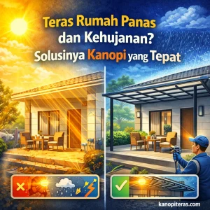 Masalah Teras Rumah Panas dan Kehujanan? Solusinya Kanopi yang Tepat dapat diatasi dengan pemasangan kanopi yang dirancang secara tepat. Kanopi tidak hanya melindungi teras dari panas matahari dan hujan, tetapi juga meningkatkan kenyamanan serta keindahan rumah.